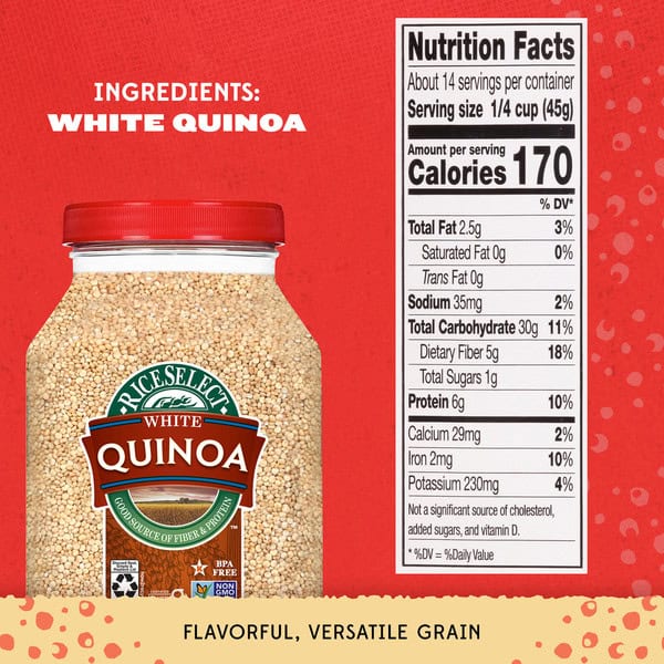 • One 22 oz BPA-free jar of RiceSelect White Quinoa