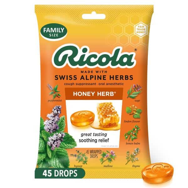 • Contains one package of Ricola Honey Herb Cough Drops with 45 individually wrapped drops for easy, convenient relief when cough, dryness or itchy allergy throat symptoms strike..