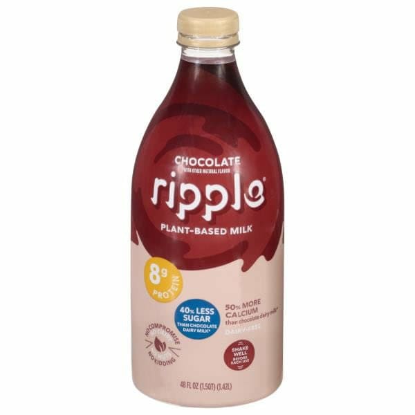 As it should be. Nutritious & Delicious Plant-Based Milk: Smart choices can be delicious. Not only is Ripple nourishing for your body and gentle on the planet, but it’s also a plant-based milk that’s unbelievably creamy and satisfying. Plus it has a much protein, more calcium and less sugar than dairy milk (1 cup of reduced fat milk contains 25 g of sugar [12 g of naturally occurring sugar] & 293 mg of calcium vs. 1 cup Ripple Chocolate Milk contains 15 g added sugar & 440 mg calcium. Chocolate milk data from USDA National Nutrient Database for Standard Reference, Legacy. April 2018). Please recycle. Certified B Corporation. Allergen Program: ripplefoods.com/faqs/allergens.