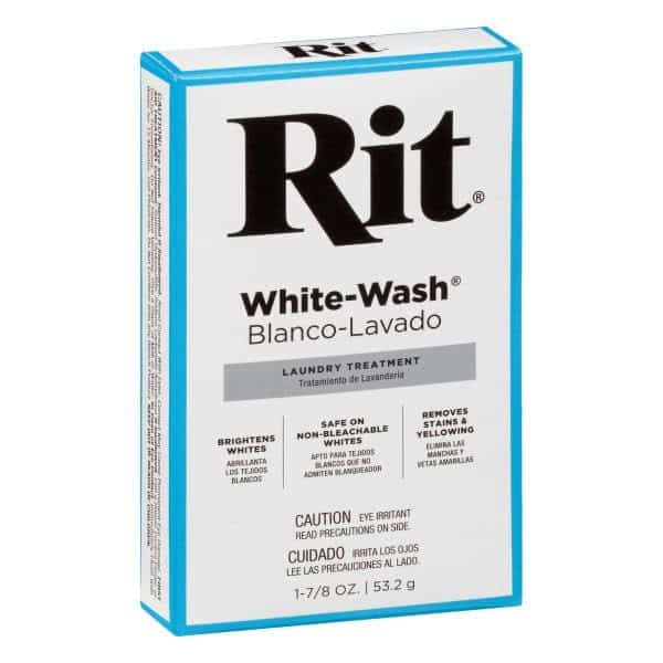 Small + Medium loads 1 package. Large + extra-large loads 2 packages. Brightens whites. Safe on non-bleachable whites. Removes stains & yellowing. Rit White-Wash is Safe on: All fabrics that can be washed in hot water, including non-bleachable whites. Brightens dingy white fabrics. Removes yellowing and discoloration. Removes stains, such as grass, grease and lipstick. Chlorine bleach free. Works on cotton, linen, wool, rayon, silk and more. Works with all washing machines, including high-efficiency. Note: Multiple packages needed if using in a washing machine. Conforms to ASTM D-4236. ritdye.com. For more information and step-by-step tutorials, visit ritdye.com. Made in U.S.A. of U.S. and imported parts.