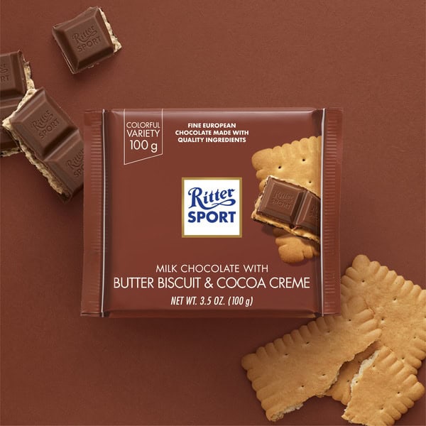If you don’t know what a butter biscuit is then we’re happy to make the introduction. Our biscuits are baked into a perfect square so they can be fitted into a bed of cocoa creme and smooth milk chocolate. It’s almost a shame to eat it. Almost.