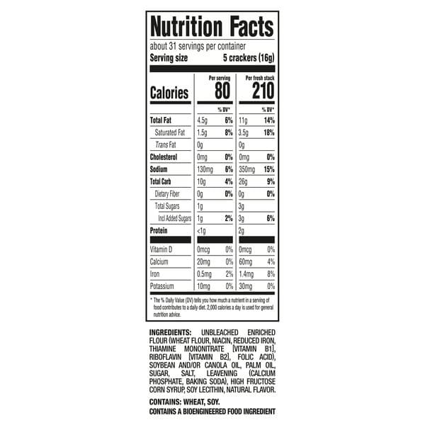 • 13 flaky and delicious snack crackers with a rich, buttery flavor per fresh stack.