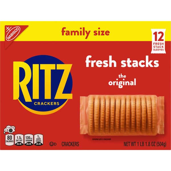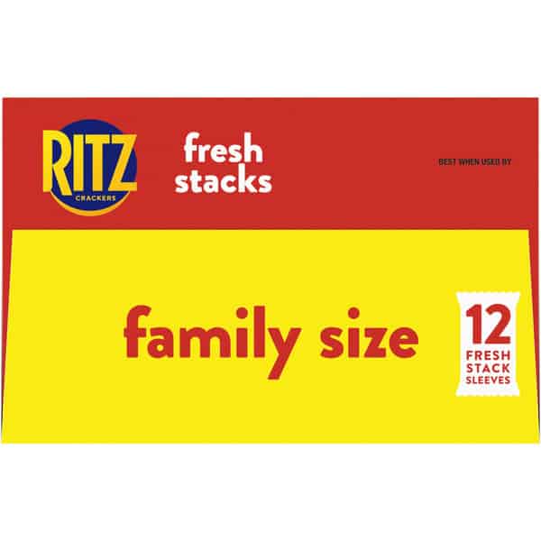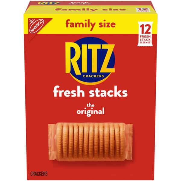 • One 17.8 oz family size box with 12 individual cracker stacks of RITZ Fresh Stacks Original Crackers (packaging may vary).