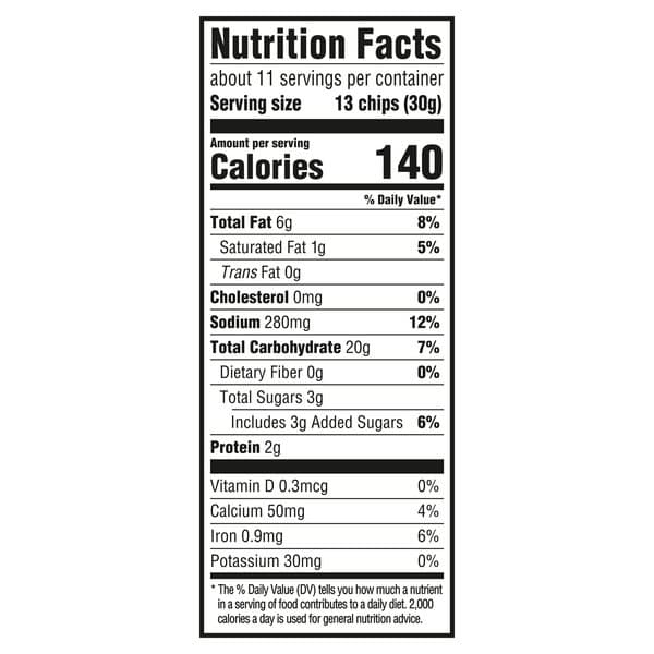 • These toasted crunchy chips have 40 percent less fat per 30g serving than leading fried potato chips.