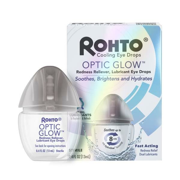 Get Every Drop Out of Life with Rohto® Optic Glow® Redness Reliever, Whitening, Lubricant Eye Drops. Brighten, hydrate, and soothe dry, red eyes for up to 8 hours. Rohto® Optic Glow® eye whitening drops use a mess-free single-drop dispenser to reduce the running of eye makeup. Plus, its BAK-free, bleach-free, and dye-free formula is great for sensitive eyes and contact lens wearers (when used as directed). Optic Glow® is packed with HydroGlow™ Technology, a unique blend of proprietary ingredients designed to help improve the health of the corneal surface for clear, white eyes. The small, portable bottle can easily be carried in a pocket or purse, perfect for soothing and hydrating red eyes anytime. Trust Rohto®, a global leading eye care brand to bring you innovative solutions for your eye health. Embrace the comfort and clarity your eyes deserve with Rohto® Optic Glow® Eye Whitening Drops. FSA/HSA eligible. Use as directed.