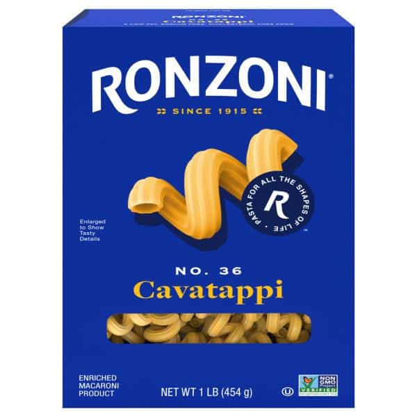 Ronzoni Cavatappi is as fun to say as it is to eat, with its playfully spiral tube shape made to hold thick, hearty sauces. For a most delicious bite, just spear a forkful and take it for a spin through your cheesy, meaty, or pesto-based sauce. Cavatappi is also called cellentani, amori, spirali, or tortiglione. One might also call Ronzoni Cavatappi simply, divine. Each 16 oz box contains up to 8 servings so you can share your favorite pasta dish with more than a few of your favorite people. A delicious foundation to wholesome meals, Ronzoni pasta is low fat, sodium- and cholesterol-free, vegetarian, non-GMO, and made with no artificial colors or preservatives. So, dish up delicious. Serve up scrumptious. Create your next five-star recipe. With Ronzoni, you can discover and re-discover your favorite pasta. Ronzoni pasta is full of possibilities.