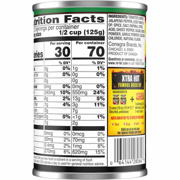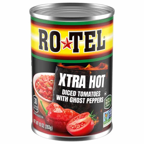 Add extra bold and spicy flavor to all your favorite dishes with RO*TEL Xtra Hot Diced Tomatoes With Ghost Peppers. Vine-ripened tomatoes, spicy ghost peppers and a mix of spices combine to give you an explosion of deliciously fiery flavor that all your spicy recipes have been missing. From salsa and queso dip to chili and all your favorite Mexican meals, add these canned tomatoes to your creations for an extra kick. These juicy, extra-hot diced tomatoes and ghost peppers are Non-GMO Project Verified and canned to deliver spicy flavor that satisfies. Add some serious heat to your menu tonight with RO*TEL.