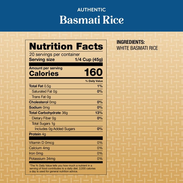 Royal White Basmati Rice is a versatile ingredient for all of your meals. Brought to you by Royal, America’s #1 best-selling Basmati rice, our long grain white rice is truly authentic from the foothills of the Himalayan Mountains. The harmony of climate, fertile soil, and pure spring water produce this extraordinary, delicate-tasting grain. Our naturally-aromatic long grain rice is harvested by India’s most expert farmers and is aged in temperature-monitored silos for the perfect non-sticky texture and fullest flavor. It is easy to cook on the stovetop, microwave, oven, or rice cooker and can be used in a wide variety of main and side dishes, including curry, pilaf, and other recipes.