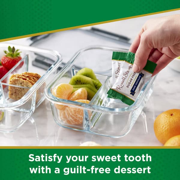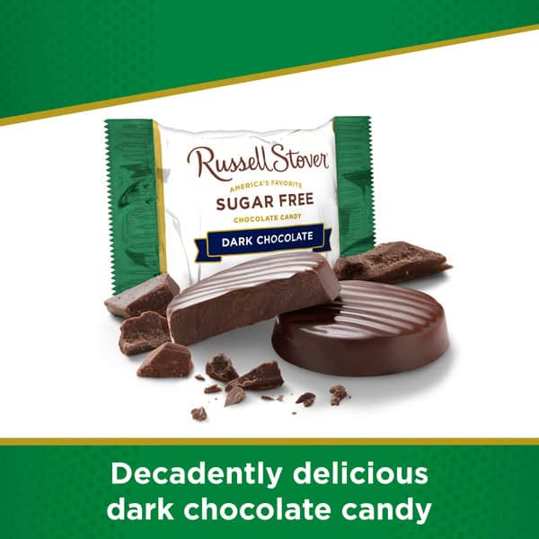 • RUSSELL STOVER Sugar Free Dark Chocolate Candy, 3 oz., is made with Stevia extract, a plant-based sweetener that delivers all the sweet taste you crave with no added sugar.