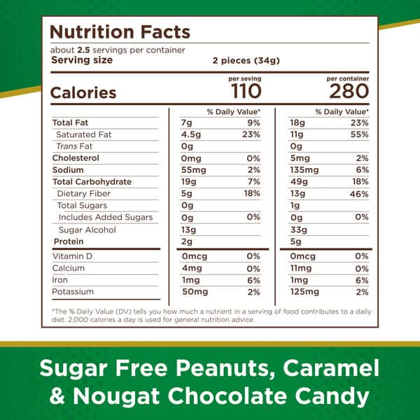 • Enjoy delicious chewy nougat filled with crunchy peanuts and creamy caramel, covered in our delicious chocolate candy; with zero sugar, they’re the guilt-free indulgence you deserve for those moments when you need to take a break from your busy day.