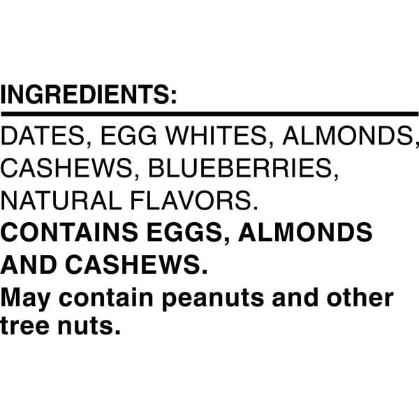 Dates, Egg Whites, Almonds, Cashews, Blueberries, Natural Flavors