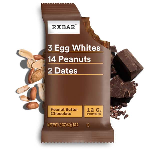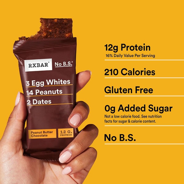 Simple ingredients make RXBAR protein bars a tasty way to help fuel your day. These peanut butter chocolate protein bars are filled with ingredients you can recognize. Each snack bar is made with egg whites for protein, crunchy peanuts, and with dates to bind it all together. Enjoy the taste of delicious ingredients that will crush any sweet cravings you have during the day; Just the right amount to help fill you up, each serving contains 12g of protein (16% daily value), is gluten free, and ready to help you take on the day. Enjoy goodness worth snacking on. On your way to the gym, in the office or paired with your morning cup of joe, improve your daily routine with RXBAR Peanut Butter Chocolate protein bars.