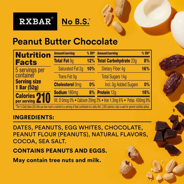 • Includes 1, 9.1oz box containing 5 RXBAR Peanut Butter Chocolate protein bars