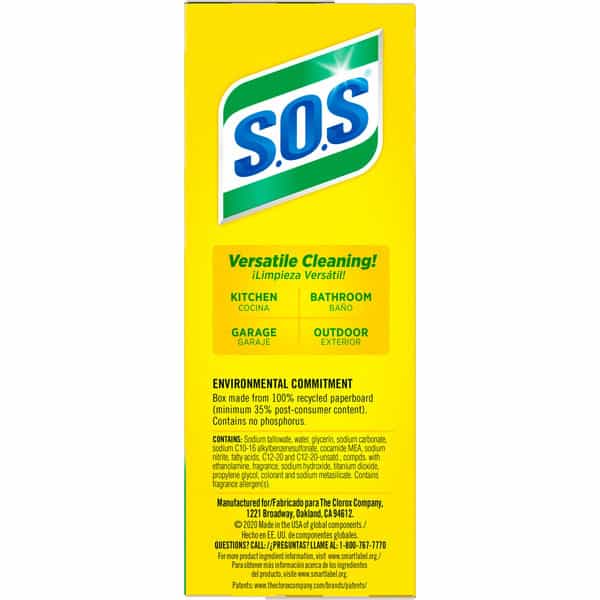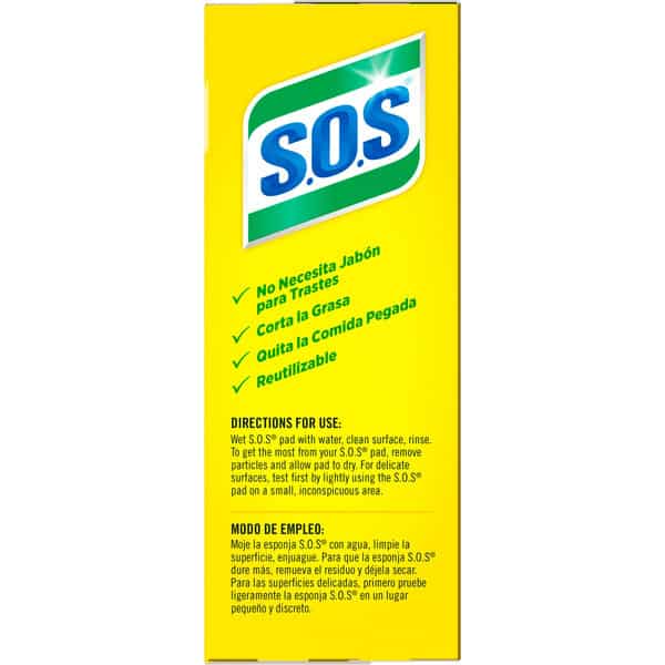 S.O.S Steel Wool Pads are tough so you don’t have to be. Made with durable steel wool and saturated with long-lasting lemon-scented soap, these pads cut through even the toughest baked-on, greasy, grimy messes. They are perfect for cleaning ovens, broilers, cookie sheets and pots and pans. These reusable steel wool soap pads are great outside the kitchen, too. From scrubbing stoves and shower doors to cleaning grills and golf clubs, S.O.S lemon-scented soap pads quickly removes stubborn grease, rust and stains inside and outside your home. The soap contains rust inhibitors, preservatives, soaps and detergents, a pH buffer, fragrance and color. Cleaning is quick and easy with S.O.S.
