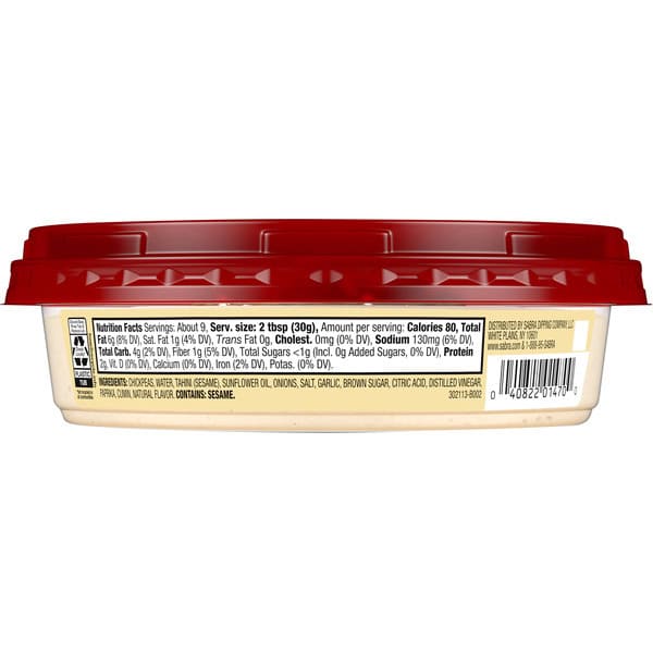 Cooked Chickpeas (water, Chickpeas), Water, Tahini (ground Sesame), Soybean Oil, Onion, Salt, Citric Acid, Garlic, Potassium Sorbate To Maintain Freshness, Dark Brown Sugar, Distilled White Vinegar, Natural Flavor, Paprika, Dehydrated Green Onions