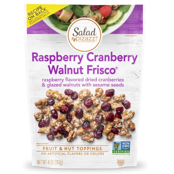 Glazed Walnuts (walnuts, Cane Sugar, Brown Rice Syrup, Sesame Seeds, Salt, Vegetable Oil [canola, Safflower And/or Sunflower Oil], Sunflower Lecithin [an Emulsifier]), Raspberry Flavored Cranberries (cranberries , Sugar, Natural Flavor, Sunflower Oil).