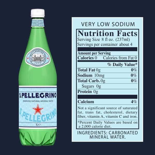 • S.Pellegrino sparkling mineral water is low in sodium and contains zero calories with no artificial colors, flavors or sweeteners