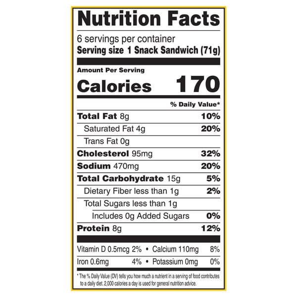 Microwave Instructions: The sandwich is perfect when the cheese is just beginning to melt. 1. Remove sandwich from wrapper. Wrap sandwich in a paper towel; place on microwave-safe plate, cheese side up. 2. Microwave on high according to chart, or until hot. Let cool before eating. Sandwiches: 1; Time: 1 minute. Sandwiches: 2; Time: 1 minute 30 seconds. For Food Safety and Quality: Keep frozen until ready to use. Microwave directions developed with 1100 watt microwave ovens. Appliances vary. Adjust heating times as needed.