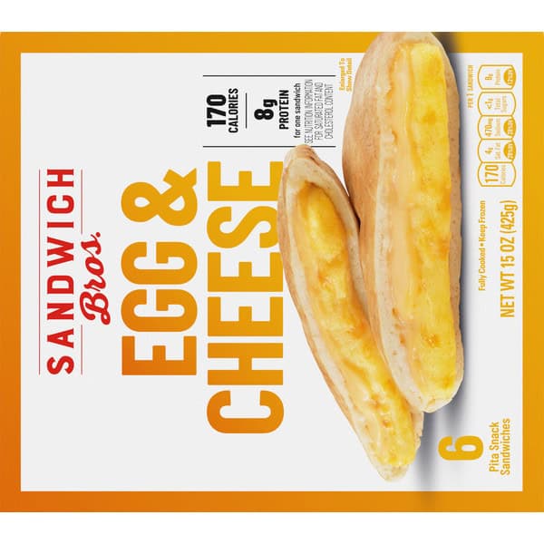 • One 6 ct box of Sandwich Bros. Egg and Cheese Flatbread Pocket Breakfast Sandwiches