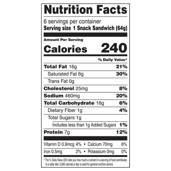 Microwave Instructions: The sandwich is perfect when the cheese is just beginning to melt. 1. Remove sandwich from wrapper. Wrap sandwich in a paper towel; place on microwave-safe plate, cheese side up. 2. Microwave on high according to chart, or until hot. Let cool before eating. Sandwiches: 1; Time: 45 seconds. Sandwiches: 2; Time: 1 minute 30 seconds. For Food Safety and Quality: Keep frozen until ready to use. Microwave directions developed with 1100 watt microwave ovens. Appliances vary. Adjust heating times as needed.