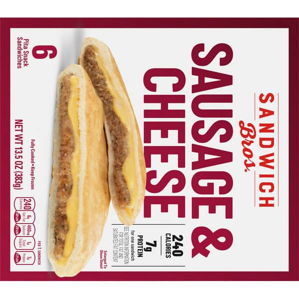 Sandwich Bros. Sausage & Cheese Flatbread Breakfast Sandwiches are just what you need when you are short on time, but want something delicious to eat. These frozen breakfast sandwiches are full of mouthwatering flavor and handcrafted with quality ingredients like 100% pork breakfast sausage patties and real cheese. The frozen breakfast food fits a low carb lifestyle with 15g net carbs per serving (16g total carbs minus 1g dietary fiber). These frozen sandwiches are perfect as frozen snacks; prepare a pocket sandwich as a snack if you’re in a rush after work or school, or dress them up with extra toppings and sides for a fast and wholesome breakfast or brunch you can enjoy with the family. All you need to do is put the frozen sandwich in the microwave for 45 seconds. Each convenient frozen breakfast sandwich is individually wrapped for easy storage and so you can take them anywhere. Keep the 6 count box frozen until ready to prepare.