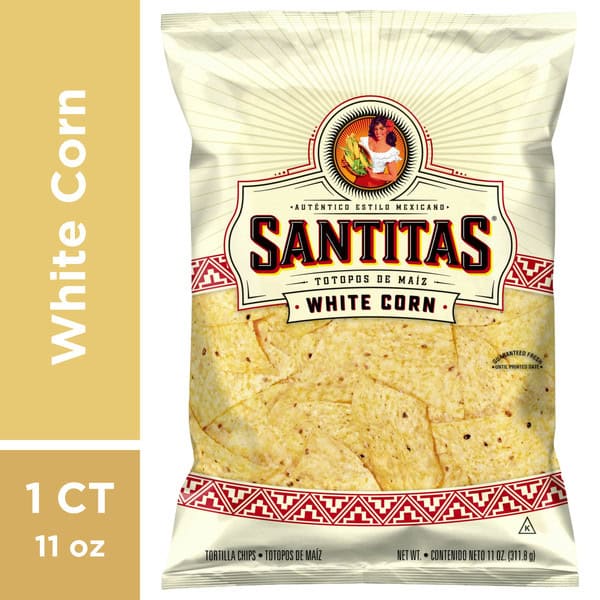 Just like the tortilla chips in your favorite Mexican restaurant, the authentic flavor of SANTITAS tortilla chips starts with high-quality, stone-ground corn. Just add salsa or guacamole on the side for a party snack that can’t be beat!