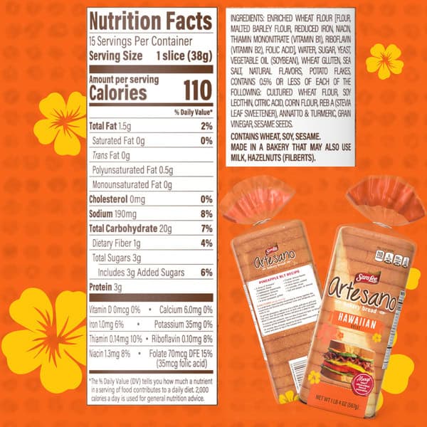 Made with the perfect amount of sweetness and a touch of sea salt, Sara Lee Artesano Hawaiian bread is a thick sliced artisan-style bread that will transport your taste buds to somewhere tropical.