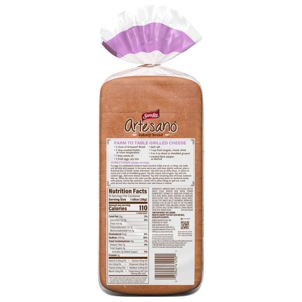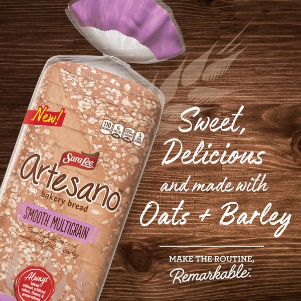 Sweet, delicious and made with oats and barley, Sara Lee® Artesano Smooth Multigrain Bread is the perfect way to enhance your favorite sandwich recipe. Artesano Bread is always baked without any artificial colors, flavors, or preservatives.