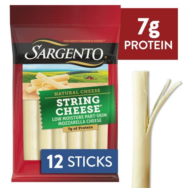 Peel and enjoy the mild, creamy snack you’ve loved since you were a kid. Sargento® Mozzarella Natural String Cheese snacks are deliciously fun with 7 grams of protein per serving* for the best on-the-go you. Mozzarella string cheese is a great snack on its own, but also pairs nicely with fruit, veggies and crackers.