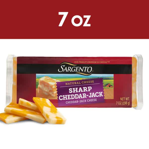The rich, smooth taste of Monterey Jack is the perfect complement to the tangy zing of Sharp Cheddar in this always-popular blend of cheeses. Our Sharp Cheddar Jack is aged to perfection— with distinctive marbling to appeal to all your senses. Our new block cheese gives you the freedom to slice, grate, cube and use however you please.