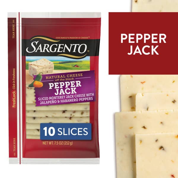 With a spicy, hot kick infused with a smooth, delicate finish, our sliced Monterey Jack cheese blended with habanero and jalapeno peppers provides the best of both ends of the flavor scale. The perfect addition to a turkey or roast beef sandwich, or atop crackers for a great afternoon snack. Sargento® Sliced Pepper Jack Natural Cheese comes in 10 slices.