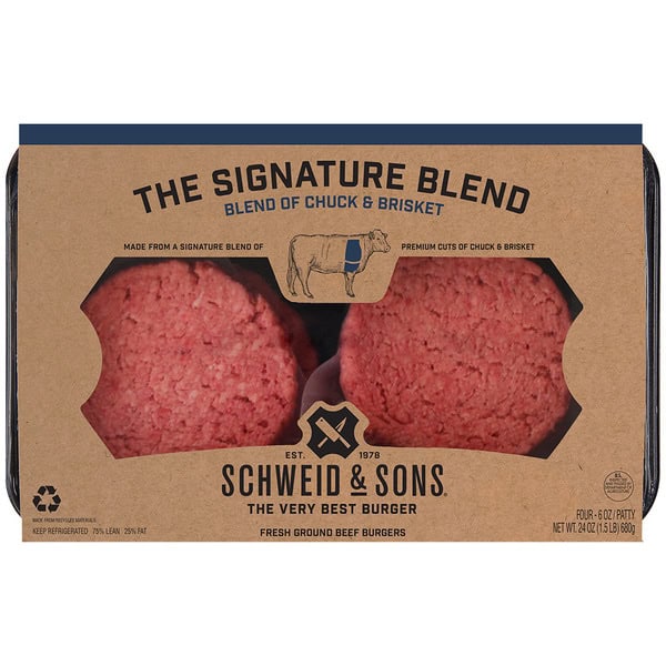 Custom blend of chuck & brisket. Est. 1978. The very best burger. 75% lean. 25% fat. In the late 1800’s, Harry Schweid was a beloved butcher that sold high quality meats to local restaurants in New York City’s lower east side. By the 1950’s his son Sam had his own business in Harlem selling the best meat around. In 1978, Sam’s son David took his family’s long withstanding heritage in the meat purveyor industry and founded Schweid & sons, a company that would focus on one product – ground beef. Today, that same passion, commitment and work ethic is carried on here at Schweid & sons through David’s two sons, Jamie and Brad, all with a dedication to producing the best tasting, highest quality burger. As Sam always said, if you put only good meat into your burgers, only good things will come out. Signature Series: The Chuck Brisket. A signature recipe perfected over four generations. Buttery, robust flavor and soft airy texture. A juicy burger made from premium cuts of chuck and brisket. Beef Flavor: Strong; Tenderness: Tender; Marbling: High.