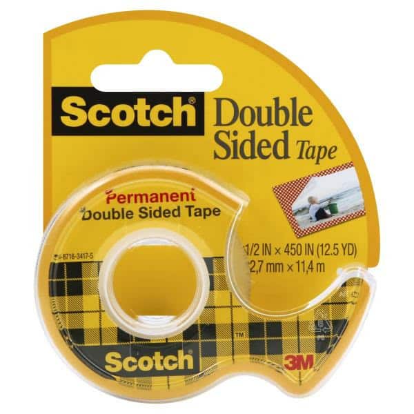 1/2 in x 450 in (12.5 yd) (12.7 mm x 11.4 m). Photo safe (safe for color photos. Photo-safe determined in accordance with ISO Standard 18916. Conforms to ASTMD-4236). Scotch Permanent double sided tape is coated photo safe (safe for color photos. Photo-safe determined in accordance with ISO Standard 18916. Conforms to ASTMD-4236) permanent adhesive on both sides. A no-mess alternative to glue for light-duty attaching and mounting tasks. Great ideas that stick. Questions or comments? Call toll-free 1-800-328-6276. www.ScotchBrand.com. Made in USA with globally sourced ingredients.