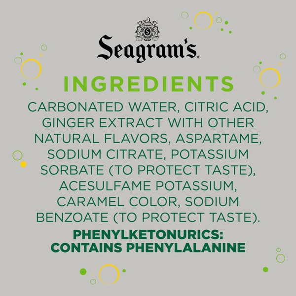 • Seagram’s Zero Sugar Ginger Ale is a naturally flavored, caffeine-free , zero calories soft drink