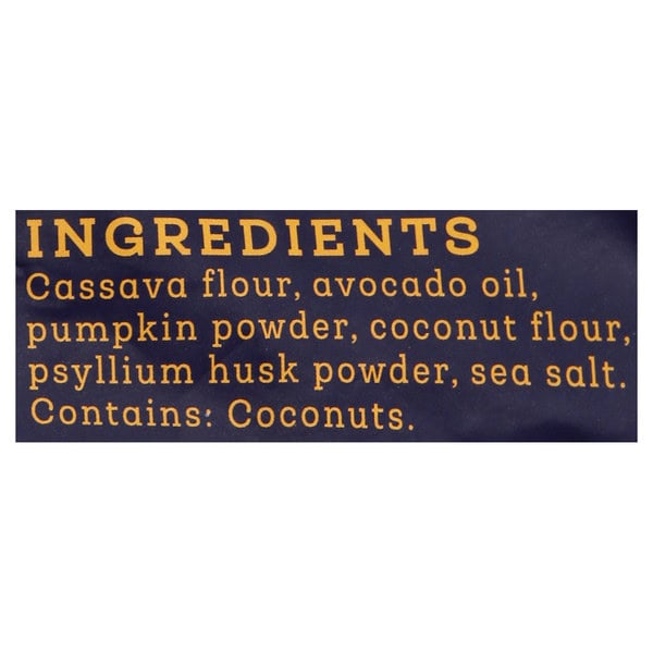 Cassava Flour, Avocado Oil, Pumpkin Powder, Coconut Flour, Psyllium Husk Powder, Sea Salt.