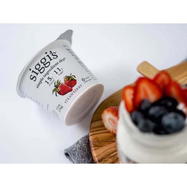 • One 5.3-ounce cup of siggi’s Strawberry Icelandic-Style NonFat Yogurt,