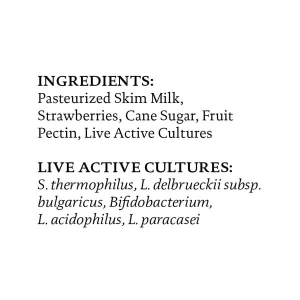 Pasteurized Skim Milk, Strawberries, Cane Sugar, Fruit Pectin, Live Active Cultures
