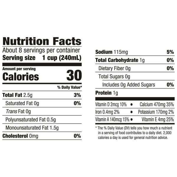 • ZERO SUGAR, JUST 30 CALORIES: 0g of sugar per serving* — unsweetened plant based milk tastes great poured over cereal or in your favorite smoothies