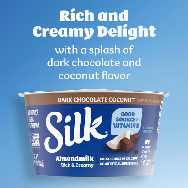 • EASY TO ENJOY: One 5.3 oz container of Silk Dark Chocolate Coconut Almondmilk Yogurt Alternative is delicious on its own or enjoy with your favorite toppings like granola or fruit