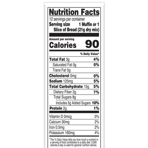 What You’ll Need: eggs; water; oil. Muffins: Makes 12 muffins. 3 eggs; 1/2 cup water; 1/3 cup oil. Heat oven to 350 degrees F. Whisk eggs, water, and oil in a large bowl. Add baking mix; whisk until well blended. Spoon batter evenly into 12 lightly greased or paper-lined muffin cups. Bake 15-20 minutes or until center of muffin bounces back when pressed. If using paper liners, let cool completely before eating to prevent muffins from sticking to the paper. Loaf: Makes one 8×4 inch loaf. 3 eggs; 1/2 cup water; 1/4 cup oil. Heat oven to 325 degrees F. Whisk eggs, water, and oil in a large bowl. Add baking mix; whisk until well blended. Pour batter into a lightly greased 8×4-inch pan. Bake 15 minutes. Then, cover loosely with foil, bake an additional 23-33 minutes or until center of loaf bounces back when pressed. Cool 10 minutes before removing from the pan. Mix it up! Toss 1/2 cup of walnuts or chocolate chips right into the batter. For extra protein, stir in 1 tbsp chia seeds or ground flax seeds. For extra moist muffins, replace water with plain unsweetened kefir.