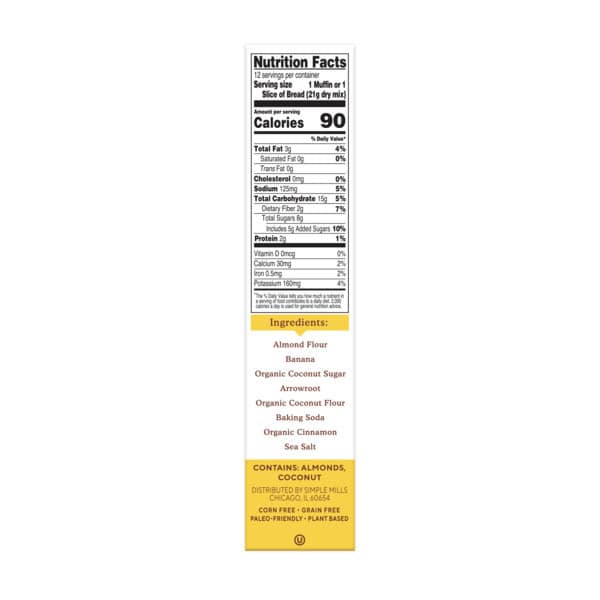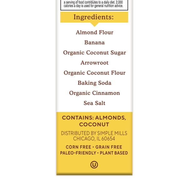 Almond Flour, Banana, Organic Coconut Sugar, Arrowroot, Organic Coconut Flour, Baking Soda, Organic Cinnamon, Sea SaltÂ