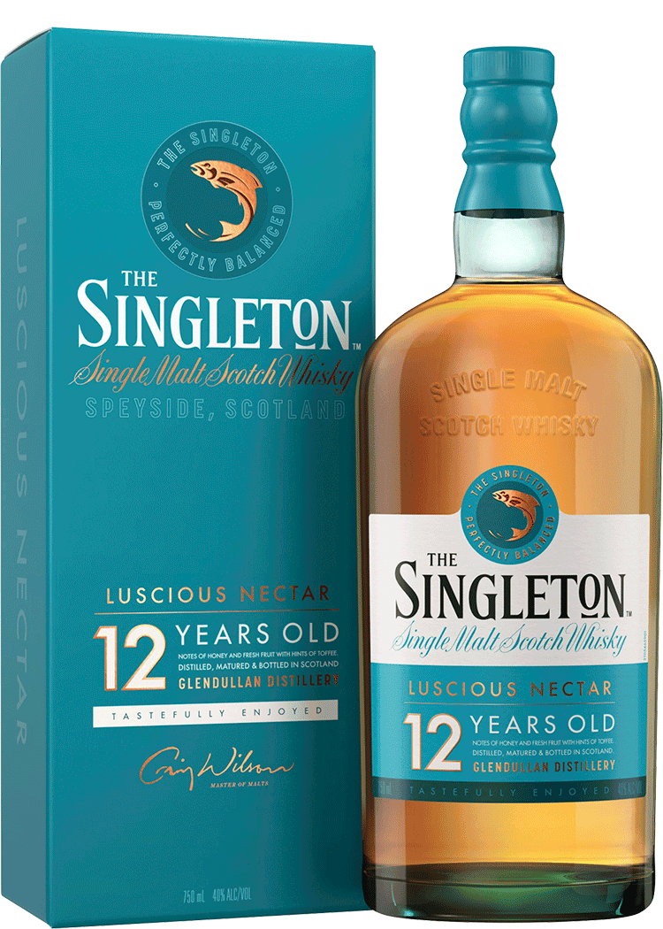Scotland – Speyside – 40.0% – The Singleton 12 Year Old Single Malt Scotch Whisky is just the right balance of rich complexity and flavor. With a fresh, light and clean nose, our whisky ranges from fruity to creamy with a touch of sweet honey.
