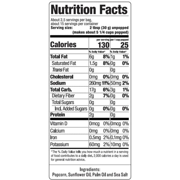 Popcorn, Sunflower Oil, Palm Oil And Sea Salt
