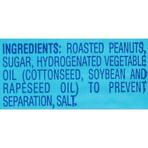 Roasted Peanuts, Sugar, Hydrogenated Vegetable Oil (cottonseed, Soybean And Rapeseed Oil) To Prevent Separation, Salt