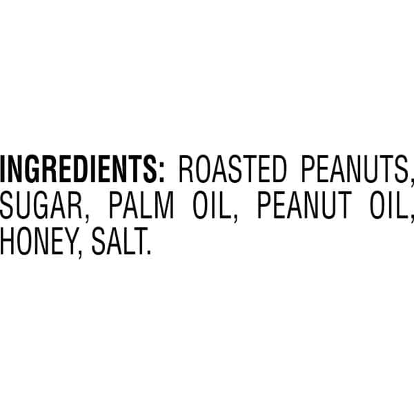 Roasted Peanuts, Sugar, Palm Oil, Peanut Oil, Honey, Salt