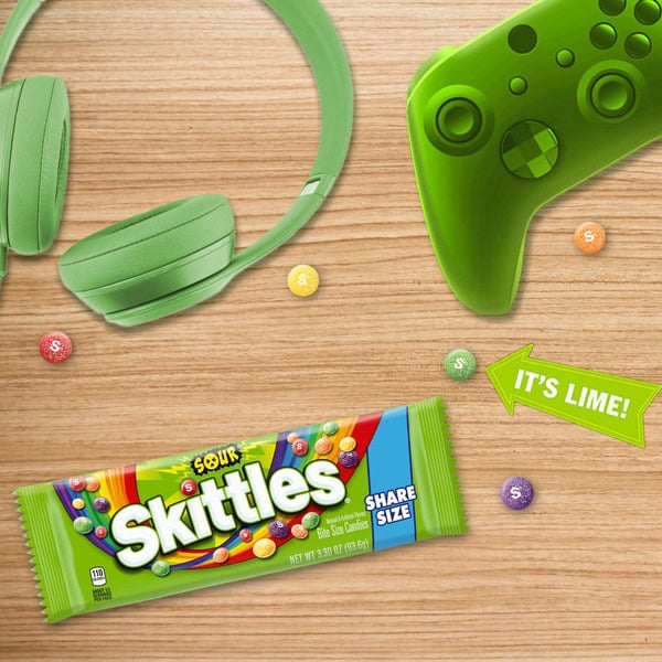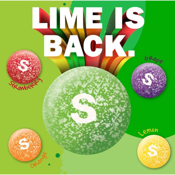 We Apologize the Rainbow”! The original rainbow you’ve been waiting to taste again is back! Sorry, it took so long, but SKITTLES Sour chewy candy welcomes back the citrus flavor favorite, LIME. This share-size bag of SKITTLES Sour candy is packed with the classic sour variety flavors, including sour strawberry, sour lemon, sour orange, sour grape, and sour lime. This bite size fruity candy is deliciously sweet and sour and can be enjoyed with family and friends. Enjoy SKITTLES chewy candy while watching a movie, while playing the game or while scrolling through your favorite timeline. Fill up the office candy dish at work and bring more chewy candy fun to a football tailgate. There’s no wrong way to enjoy the fruity, mouth-watering taste of SKITTLES Sour candy assortment especially now that Lime is back. It’s time to celebrate the return of LIME SKITTLES! Order your bag of SKITTLES Sour candy today and reintroduce your taste buds to the original taste of the rainbow.