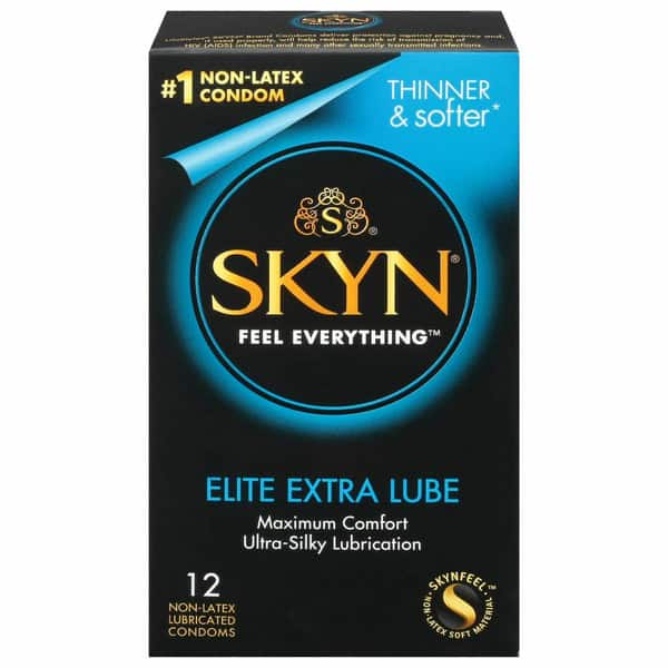 SKYN Elite Extra Lube Ultra Thin Premium Polyisoprene Lubricated Condoms are made with SKYNFEEL, a non-latex material that feels soft and natural. 15% thinner than our SKYN Original condoms, and with 40% more ultra-silky lubricant, these condoms provide ultimate sensitivity and enhanced comfort. They are also ultra soft and easily stretch to your shape so that they are comfortable to use. All SKYN condoms are free from natural rubber latex, making them a suitable choice for people who have a known or suspected allergy to natural rubber latex.