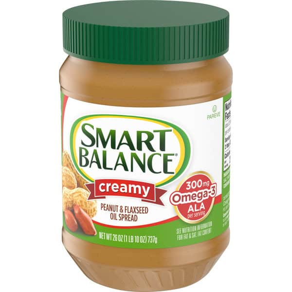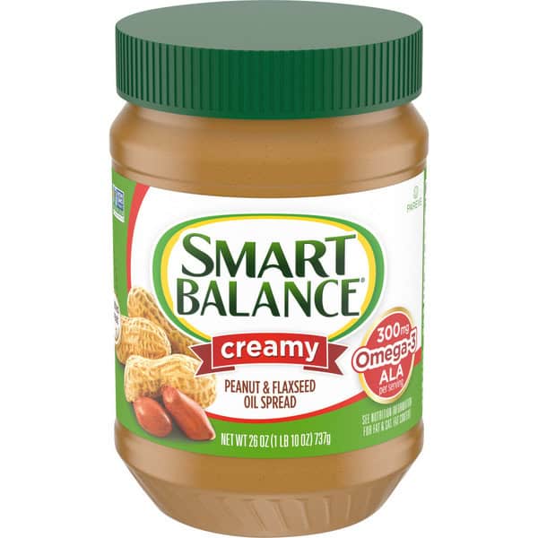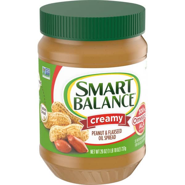 Smart Balance Creamy Peanut and Flaxseed Oil Spread is a delicious alternative to peanut butter. This creamy peanut spread is made with deep-roasted peanuts for extra flavor and flaxseed oil. Not only is this smooth and creamy spread delicious, it is also made with no hydrogenated oils, 8 grams of protein, 0 grams of trans fat and 300 milligrams of omega-3 ALA per serving (18% of 1.6g DV) and non-GMO ingredients, so you can enjoy it without compromising nutrition goals. Use Smart Balance peanut butter alternative to make peanut butter and jelly sandwiches for easy lunches on the go. You can also try pairing this smooth peanut butter spread with bananas and apples for a delicious healthy snack food. This creamy peanut butter substitute is also gluten free and lactose free. The jar is easy to store and use and should be kept at room temperature. Love the feeling you get from truly great food. Smart Balance makes the staples of your diet better than before—for you, your family and the world.