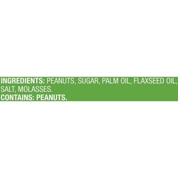 Peanuts, Sugar, Palm Oil, Flaxseed Oil, Salt, Molasses.