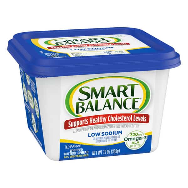 Smart Balance Low Sodium Whipped Buttery Spread is a low sodium butter alternative that offers all the deliciousness of butter without the dairy. This margarine spread substitute supports healthy cholesterol levels* when used as part of a healthy diet that is low in saturated fat and that includes exercise and other physical activity. This vegetable oil spread has 320 milligrams of omega-3 ALA per serving, which is 20% of the 1.6 g Daily Value for ALA. It’s a non-dairy butter substitute that is gluten free and low sodium* to help you reach your health goals. This spreadable butter alternative is easy to use on all of your favorite foods. Use this butter spread substitute in anything you cook or bake. It’s delicious on toast, hot muffins, vegetables and more. This whipped butter substitute comes in a convenient 13 ounce butter tub for easy storage in the refrigerator. Love the feeling you get from truly great food. Smart Balance makes the staples of your diet better than before—for you, your family, and the world.